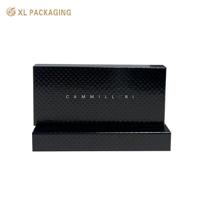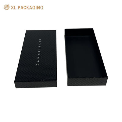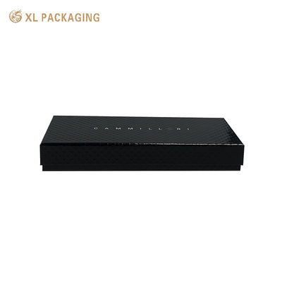 Wir präsentieren unsere schwarze Geschenkverpackungsbox, eine vielseitige Wahl für alle Ihre Geschenkbedürfnisse. Diese Deckel-Boden-Papierboxen werden von einer automatischen Maschine hergestellt, was eine kostengünstige Lösung für Ihre Anforderungen an Geschenkverpackungsboxen gewährleistet. Die Außenseite der Geschenkverpackungsbox weist eine Glanzlaminierung auf, die durch das Auftragen einer Spezialfolie erreicht wird, während das Golfball-Textur-Design auf der Oberfläche der Geschenkverpackungsbox das luxuriöse Aussehen von Leder imitiert und der Papierbox ein Premium-Gefühl verleiht.