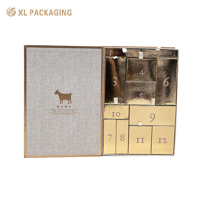 XL-Verpackung Nachgewählte Geschenkbox Verpackung Anpassen Adventskalender Hautpflege Box 12 Schublade Creme Lippenstift Parfum Kosmetik Adventkalender Geschenkbox Papierbrett